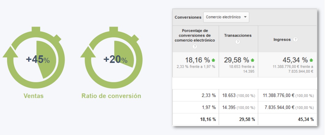 Las recomendaciones anteriores permiten intuir la gran cantidad de variables que se deben analizar a la hora de optimizar el funcionamiento del e-commerce. Como ejemplo, citamos dos casos de éxito de B2 Performance.